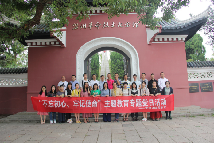2019年10月9日下午,管理分院党总支组织全体党员开展“不忘初心、牢记使命”主题教育专题党日活动——赴温州江心屿革命烈士纪念馆接受党史、新中国史教育。