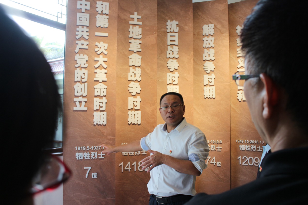 随后,在王本轶同志的带领下全体党员参观了温州革命烈士纪念馆。展厅内展出了谢文锦、刘英等120名浙南革命烈士的事迹、史料、遗物等。那一件件珍贵的图片、文献资料、物品、雕塑,激发了每一位党员干部对革命先烈的崇高敬意。对我们共产党人来说,中国革命历史是最好的营养剂,多重温这些伟大历史,心中就会增加很多正能量。
