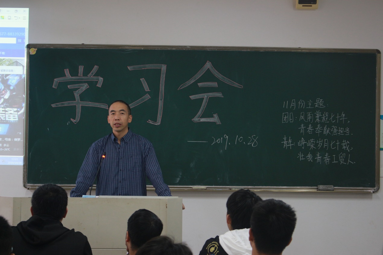 10月28日中午,电子工程系学习会在6503教室召开“不忘初心、牢记使命”主题教育专题学习会,18、19级班长、团支书和入党积极分子参加,马克思主义学院指导老师程振设作重要讲话,会议由学生支部书记姜集苗主持。