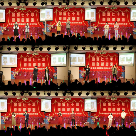 本次活动共分为三个环节,第一环节中16位选手以“歌颂祖国”为主题两两一组自选歌曲进行小组对抗。这种方式不仅要考验个人的唱功,还要考验与队友的完美配合。上场的八组选手带来的歌曲亦或深情四溢、亦或宏伟高亢,淋漓尽致的展现了对祖国无限热爱。尤其是第五组选手李林霜、丁平烽带来的《生来倔强》,一开口便瞬间沸腾了整个活动现场,赢得了台下观众的阵阵欢呼与掌声。
