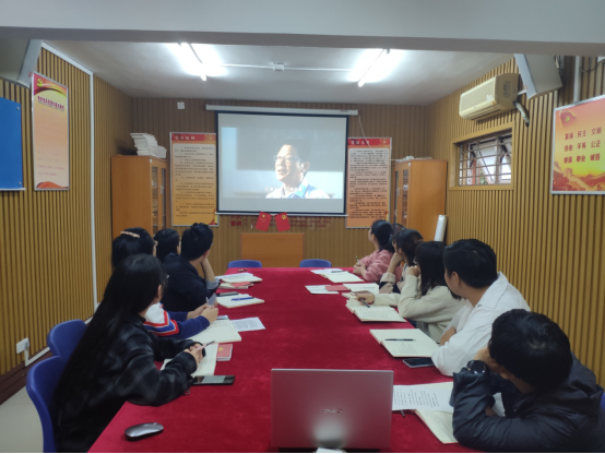 贾飞翔老师领学陈立群同志的先进事迹:陈立群同志是在优先发展教育、建设教育强国实践中涌现的教书育人楷模。他坚守初心,用教育阻断贫困的代际传递,充分展现了新时代教育工作者的奉献精神和崇高品格。贾老师特别指出要学习陈立群同志初心不改和矢志不渝的政治品格、艰苦奋斗和苦干实干的可贵担当、扎根基层和甘于奉献的崇高精神。之后播放了陈立群同志的视频,引发了全体党员更深层次的触动。