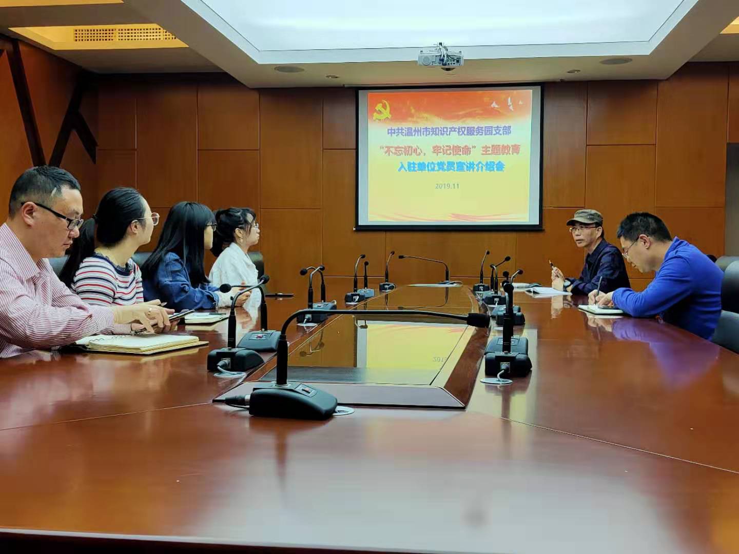 近日,我院的温州市知识产权服务园支部邀请园区各入驻单位的在岗党员举行“不忘初心,牢记使命”主题教育宣讲介绍会。园区支部书记向各入驻单位的党员详细宣讲介绍了全国及学院正在积极开展的“主题教育”的重要意义、学习教育内容、基本步骤、要求及目前开展的活动及取得的成效等,使部分已不常参加党组织活动的社会入驻单位的党员对主题教育有了较为具体的了解感受。入驻单位的党员还集体观看了系列教育党课视频《难忘初心》专题片的部分内容。