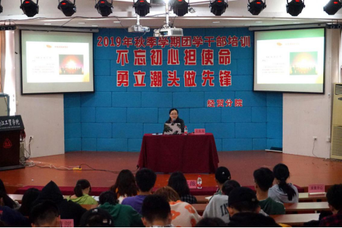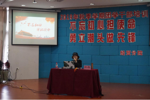为深入学习贯彻习近平新时代中国特色社会主义思想,进一步提升我院学生干部的政治觉悟及职业素养,11月17日早上8:30,经贸分院于阶梯教室迎来了以“不忘初心担使命,勇立潮头做先锋”为主题的第二期团学干部培训。此次培训由马克思主义学院副教授郭薇,经贸分院辅导员吴妮妮主讲,此外,经贸分院全体班团干部参加了此次培训。