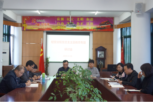 11月26日下午,经贸分院“不忘初心,牢记使命”主题教育专题研讨会在一号楼六楼会议室举行。经贸分院党总支书记张勰、党总支委员参加会议,分院院长、二级党支部书记列席会议。此次专题研讨会分为两个阶段。会议第一阶段由党总支书记张勰主持,会议第二阶段由党总支组织委员周妍妍主持。