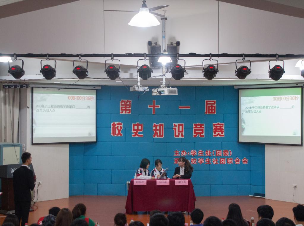 学院第十一届校史知识竞赛在我校阶梯教室举行,此次比赛共有九个院系的二十六位选手参加。团委陈梦园老师,招生就业中心陈涵老师、学生团委副书记徐翔昊、校学生社团联合会主席罗钰晶学姐出席了本次活动。
