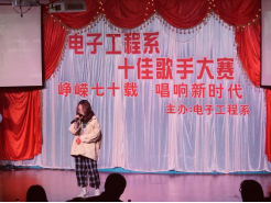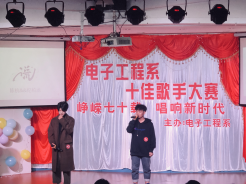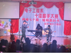 11月25日,由电子工程系团总支会文体中心承办的“峥嵘七十载,唱响新时代”为主题的十佳歌手大赛在阶梯教室隆重举行。本次大赛邀请到吉他社社长林鑫 、设计分院团总支副书记吴雨欣、 歌友俱乐部前社长陈颜以及我系学生会主席郑逸玲 、团总支副书记郭洺宇、文体中心部长应昊泽担任此次比赛的评委。比赛由陈琪量和葛颖颖主持。