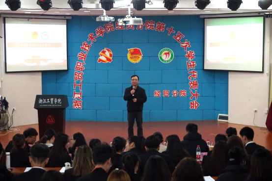 大会由资格审查委员会小组组长胡凯文宣读审议通过了代表资格审查报告,并宣读了《大会选举办法》,随后学生会主席朱凯、团总支副书记钱余敏、党务中心副主任郭小祥分别作了浙工贸经贸分院第十四届学生委员会工作报告,共青团浙工贸经贸分院第十四届团总支工作报告和第二届学生党务中心工作报告。回顾总结了上一届学生代表大会以来我院共青团,学生会及党务中心工作的成绩和经验,同时也明确了今后我院共青团与党务工作总目标,对今后的工作进行了部署和展望。