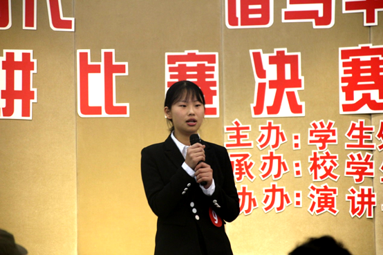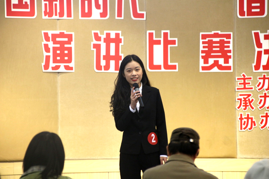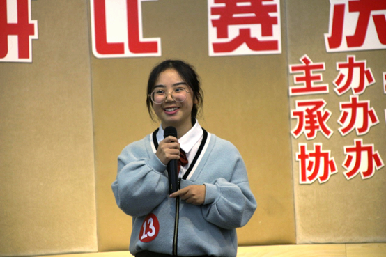 担任决赛竞赛评委的是徐辉、任志杰、蒋子怡和陈梦圆四位老师以及大三的学生主持人张钰莹。比赛中,各位参赛选手按照抽签顺序依次登台,或是纵横捭阖,历数英雄事迹,展望祖国未来;或是娓娓道来,回顾屈辱历史,坚定复兴圆梦志向;或是舌灿莲花,侃侃而谈,道尽新中国的辛酸和血泪;亦或是口若悬河,讴歌建国70周年的丰功伟绩,感慨祖国的繁荣昌盛……凡此种种妙语连珠,激情感人!参赛选手们从容不迫的姿态,滔滔不绝的表述以及淋漓尽致的发挥为我们呈现了一堂声震林木视听盛宴,获得了场下观众和评委此起彼伏的掌声,更是将现场的气氛一次又一次推向了高潮。最终,经过一个多小时的激烈角逐,人文系法语1902班的李鸿蓉同学以声情并茂、亲切流畅的演讲给评委留下了深刻的印象,成功斩获金口才奖,知识产权1901班鲍志豪和计算机1904班干晨晨两位同学也不甘落后,分别拿下了银口才奖和铜口才奖;知识产权1901班梅雨潇获最佳人气奖,3+2旅游管理1901班的曾蕾蕾获最佳台风奖;法语1902班的王真、3+2模具1901班盛辉、电商1902班黄真获最佳选手奖;软件1906班杜树龙、动漫1902班洪陈文、法语1902班方之雁、国贸1903班闻楚云、会计1902班林雨晗获优秀选手奖,演讲比赛在观众的热烈掌声中落下帷幕。