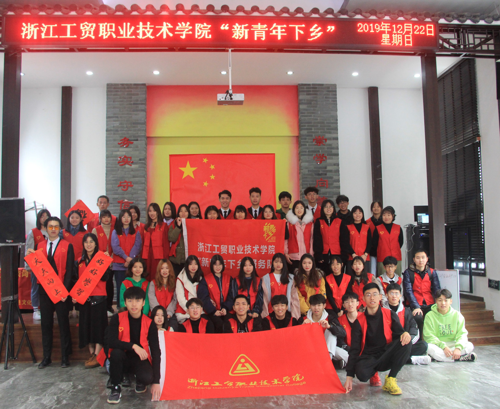 12月22日,学院近50名“新青年下乡”志愿者们来到温州市鹿城区七都樟里村社区开展2019“新青年下乡”暖冬志愿服务活动。本次活动以“践行时代精神,凝聚青年力量”为主题,在冬至这个特殊的日子里为社区居民送去节日的问候。