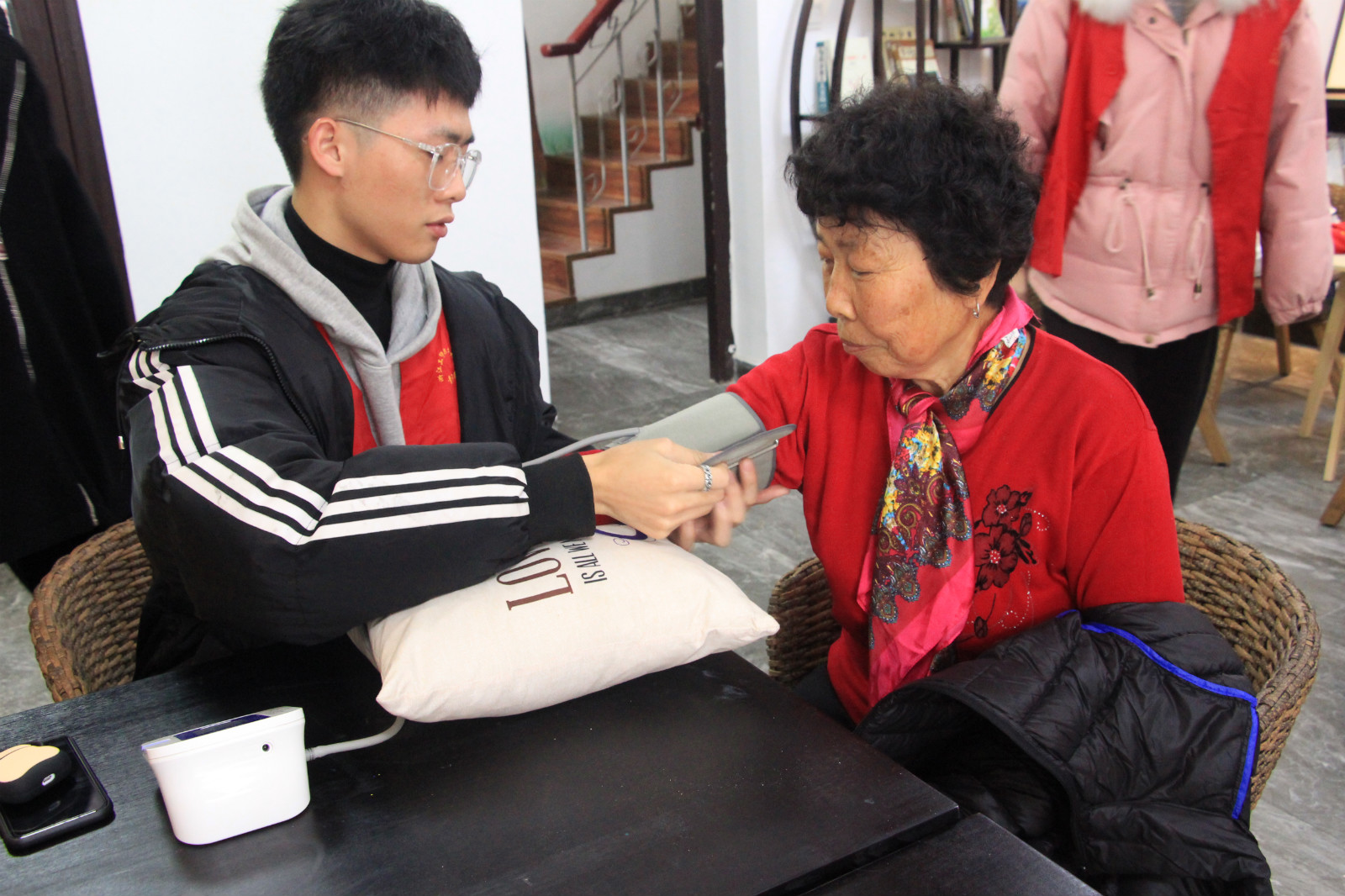 首先,志愿者们为社区居民带来精彩的文艺节目表演。一首歌曲点燃激情,一支舞蹈带动气氛,一个小品引人深思。表演结束后,志愿者们还为在场的老人们测量血压,并讲解了在平时生活中如何合理控制血压,叮嘱他们注意身体。书法社的志愿者们给居民们送去了迎新对联以及一些美好的祝愿,加强了与社区之间的交流。不仅如此,志愿者们还出发前往七都街道老涂桥老年养护中心,在冬至这样一个阖家团圆的日子里,为中心的老人们带去了手套、围巾等慰问品,志愿者们陪着老人们聊天,也让老人们在寒冷的冬季感受到了节日的气氛与温暖。坐上校车安全抵达学校。