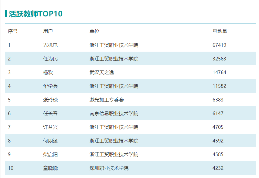图1光机电资源库活跃教师与学生TOP10