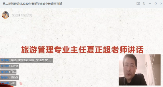 2020年4月8日晚上,管理分院通过钉钉直播方式分3场召开2020春季学期集中始业教育大会,管理分院党总支书记项光春老师、院长潘毅老师、各专业主任、2018级和2019级全体班主任及1483名2018和2019级学生等参加。大会由辅导员主持。