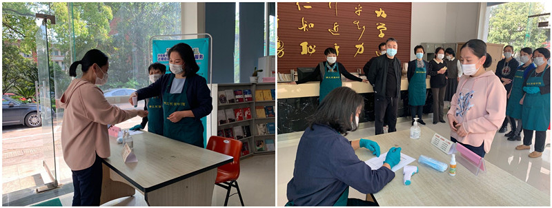 演练现场,根据《学院新冠肺炎疫情防控应急预案》及其它相关文件,在图书信息中心副主任罗坚的指挥下,图书馆馆员们分别模拟预演了读者入馆、出示预约信息、检测体温、发现体温异常者立刻登记上报等场景。重点开展了对读者出现发热、咳嗽、体温异常情况时处置、隔离、上报等流程的演练。整个演练过程严格按照疫情防控应急预案进行,分工明确、反应迅速、协调有序。