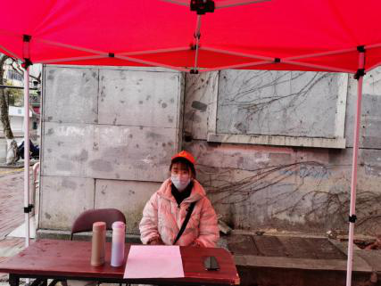 “您好,请.......”这是她每天说的最多的话。纵使天寒或下雨,执勤遇到天气不好时,手脚冰凉的她站在雨棚下始终坚守在负责点,确保社区管控不脱节、居家观察人员不脱岗,实在吃不消时,跺跺脚搓搓手来取暖。她说不能放松警惕,要严格防守小区,禁止外来人员进入,尽管没有上前线,也希望为国家贡献一份力