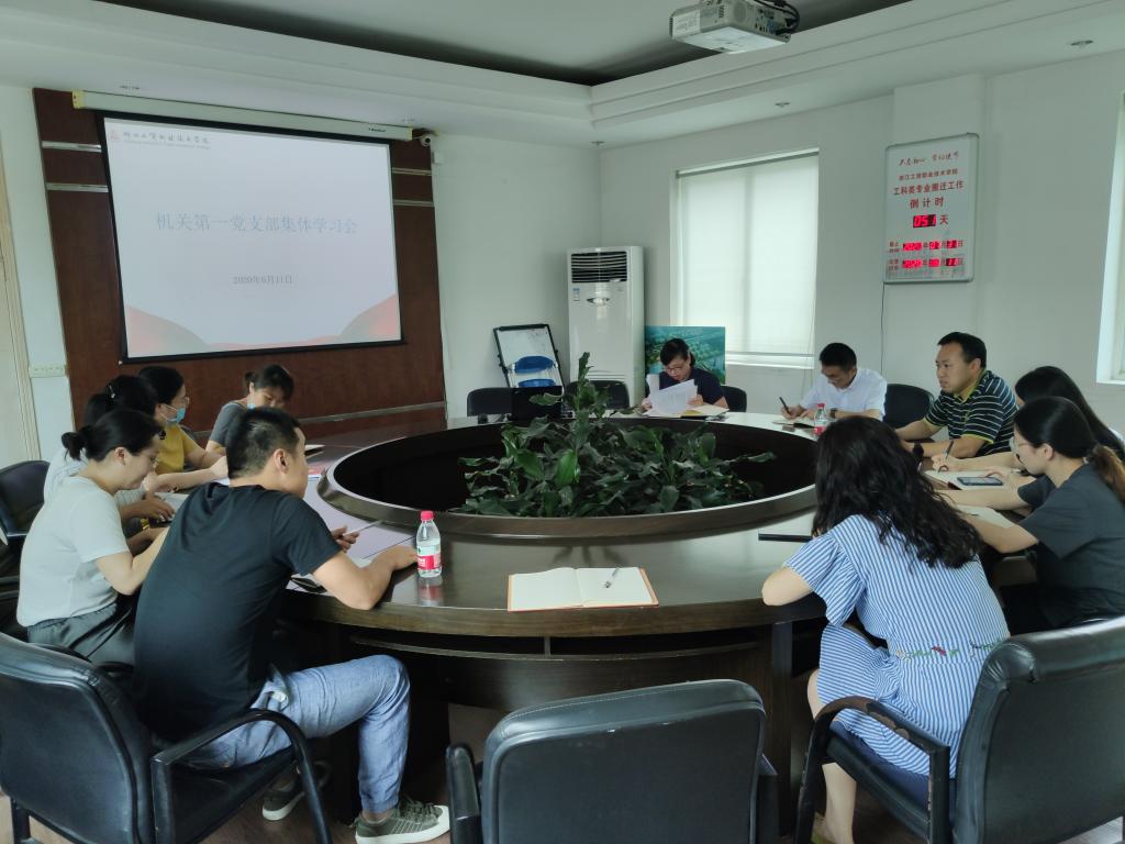 6月11日下午,学院机关第一党支部召开党员学习大会,由党支部书记、机关党总支书记、组织部(统战部)副部长骆毅同志,学院纪委副书记、纪检监察室主任黄爱素同志分别就“重要窗口”建设和《党委(党组)落实全面从严治党主体责任规定》两个主题上党课,并对全国“两会”精神进行了传达学习。