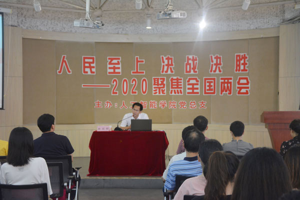 2020年6月12日下午13:30,人工智能学院在多功能厅召开“人民至上,决战决胜——2020聚焦全国两会”学习会。