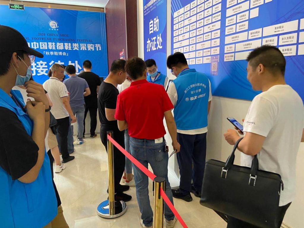 伟德BETVlCTOR1946鞋类专业30个志愿者在卢行芳教授的带领下,主要负责永嘉铂尔曼酒店和真好酒店两个主会场的客商接待和维持现场秩序工作。疫情当下,健康被摆在了第一位,此次采购节汇聚了来自全国各地的商家,人流量庞大,使得防疫工作变得艰辛。志愿者们指导前来的商户出示自己的健康码并在指定位置测量体温,井然有序的进入通道,引导他们使用手机进行信息的预登记,再到自助取证机或柜台处录入人脸信息,在完成以上步骤后方可在闸机处刷脸进入会场内部进行参展。为了应对手机上预登记失败的状况,志愿者们还承担了人工办理通道的工作,同时也在此处进行商家登记,这样有效解决了厂家和客商的人员混乱的状况。由于商家数量多,现场人流量大,为了避免出现客商偷拍鞋款导致厂商未投产的鞋款泄露或是其他非相关人员的混入,几位志愿者还主动承担了各楼层间巡逻任务,维持现场治安。