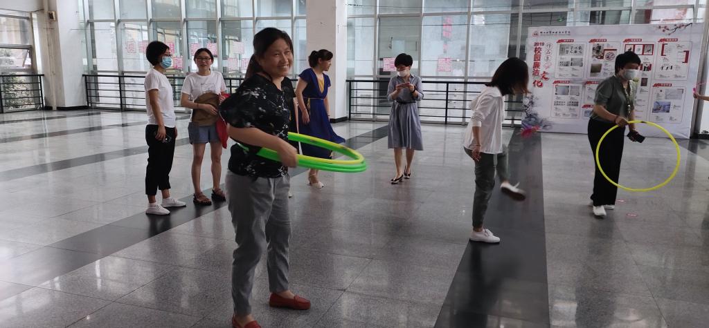 今年一场新冠肺炎疫情席卷全球,打乱人们正常工作、学习和生活秩序。阳光总在风雨后,在麻小珍主席和徐剑敏委员的策划下,6月29日下午15:30,行政一分工会六个部门30多名女职工,在六号教学楼一楼大厅开展“踢毽子、呼啦圈、跳绳”等文体活动,活动在轻松愉悦的氛围中进行着,欢声笑语此起彼伏,虽然是传统的三个小游戏,却让大家玩得很投入、很开心……通过活动进一步增进行政一分工会女教职工之间的交流与协作,丰富业余文化生活,使女同胞们能在娱乐和活动中释放紧张的工作和生活的压力。活动结束后,“最美半边天”们集体合影留念,当做日后美好回忆。相信老师们拥有良好的心态,今后能以更加饱满的热情和激情认真投入到教书育人工作中去,撑起事业和家庭的半边天。