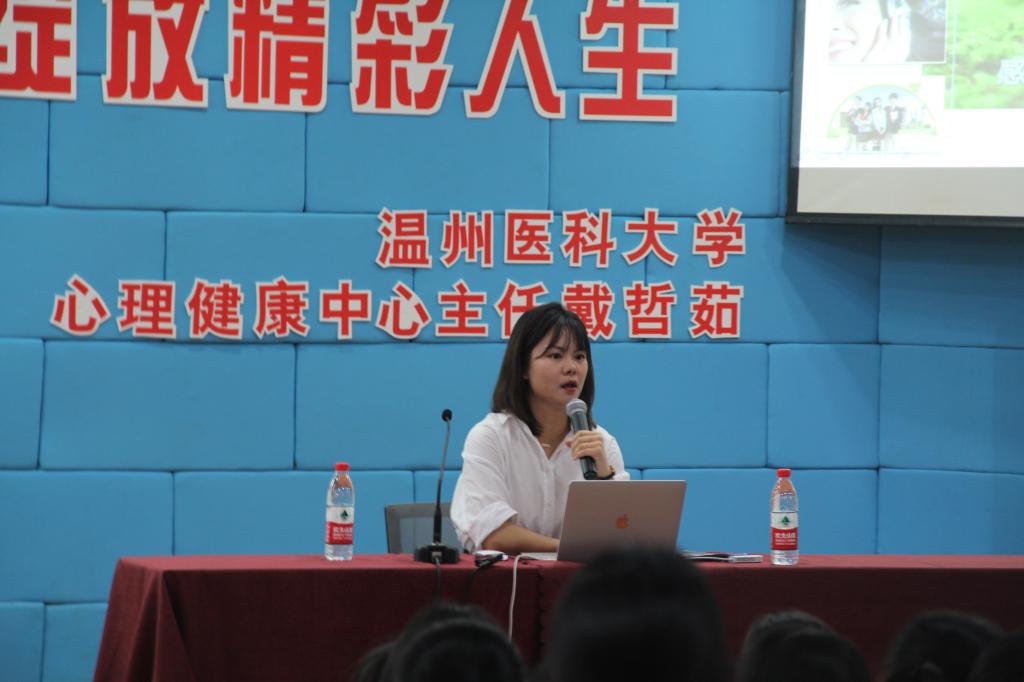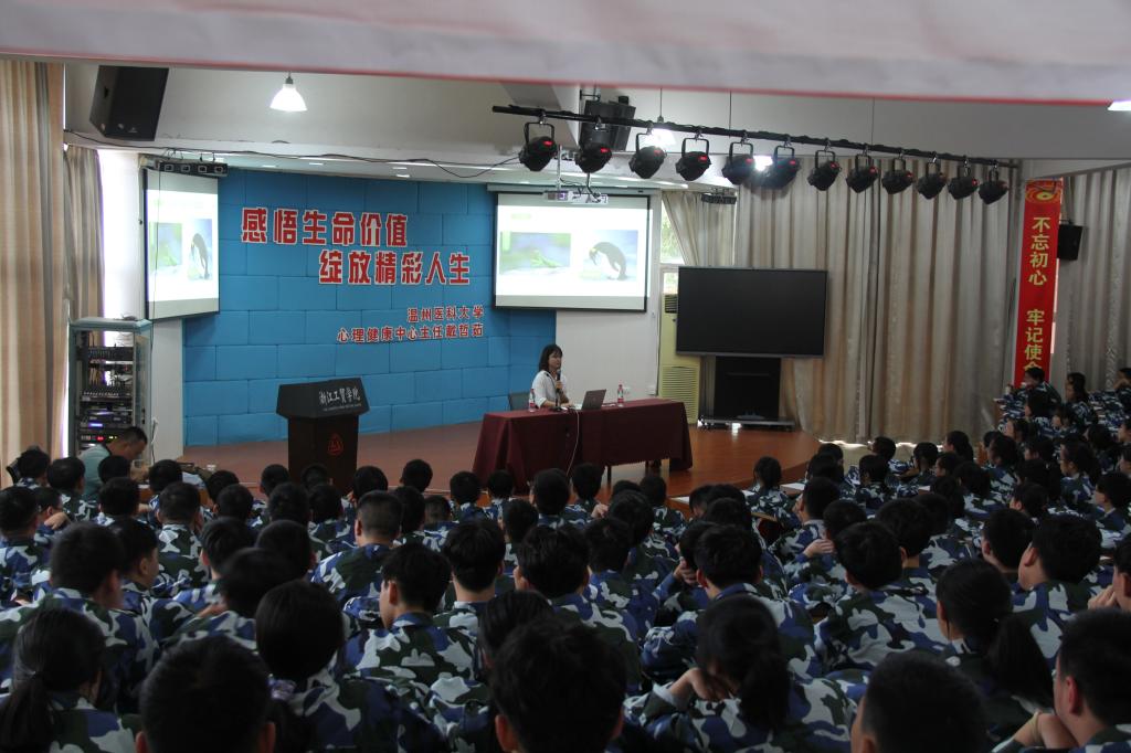 9月23日下午,技师与继续教育学院在1号楼阶梯教室举行了“感悟生命价值,绽放精彩人生”为主题的生命教育讲座。讲座邀请了温州市医科大学心理健康中心主任戴哲茹主任向2020级新生做主题报告。