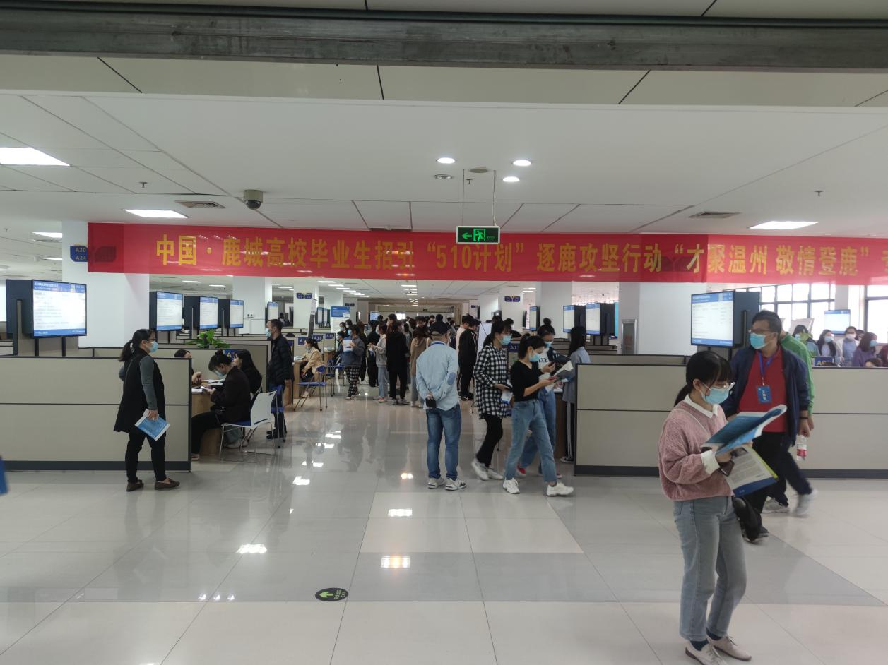 为贯彻落实市委市政府关于“百万人才聚温州”决策部署,切实做好我院毕业生就业工作,拓宽就业渠道和促进毕业生留温就业。10月21日下午,学院就业指导中心组织近200名2021届毕业生前往温州市人才市场参加“才聚温州 敬情登鹿”的鹿城区高校毕业生招引“510计划”逐鹿攻坚行动专场招聘。