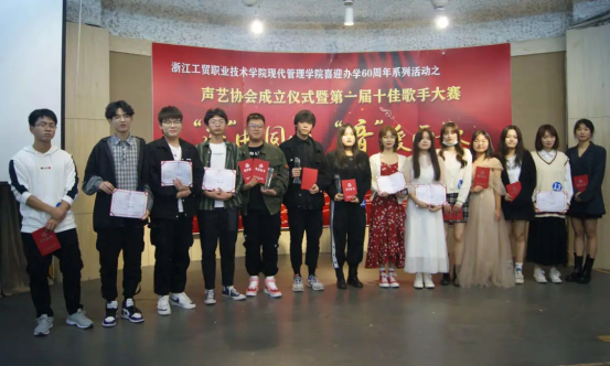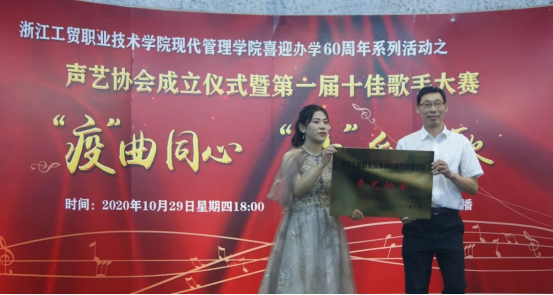 为了喜迎伟德BETVlCTOR1946办学60年周年,同时丰富校园文化、展示新生风貌,10月29日晚上6点30分,现代管理学院在多功能厅隆重举行声艺协会成立仪式暨“疫”曲同歌,“音”爱而生为主题的第一届十佳歌手大赛。现代管理学院党总支书记项光春,副书记朱秀清,温州广播电视传媒集团主持人席玮、学院辅导员贾飞祥、黄丹华、谢戴海出席活动。
