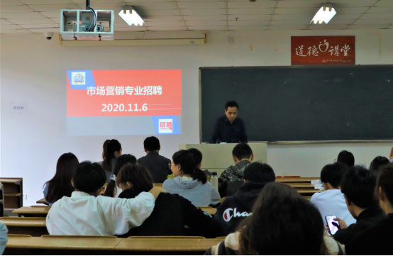 为了更好支持温州地区企业发展,加强校企合作,培养社会人才,2020年11月6号下午。国际商贸学院市场营销专业在多媒体教室6204举办,有近100名毕业生参加本次专场招聘会。参加企业有:杭州华商联华集团有限公司、温州争鸣知识产权有限公司、华厦眼科医院集团和轶笙文化传播有限公司,会议由专业主任王言炉老师主持。