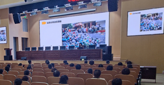 为做好垃圾分类工作,培养师生垃圾分类的意识,在校园营造人人环保,个个参与的良好氛围,特邀请温州市综合执法局专家在11月份两次为我校开展垃圾分类知识讲座,参加讲座的有学生,辅导员、食堂及后勤物业工作人员。