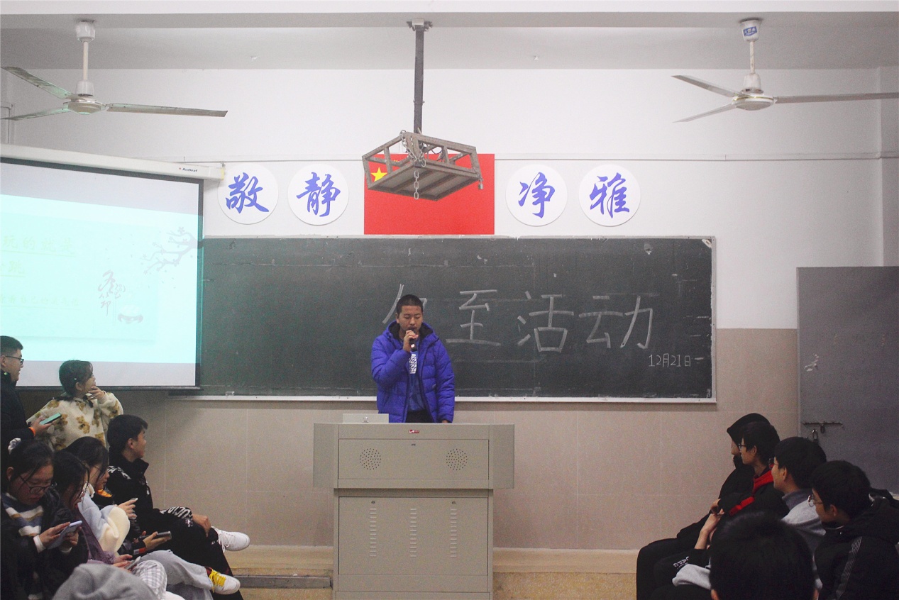活动伊始,主持人通过对传统节日——冬至的起源、习俗出发,让同学们更加深刻了解冬至节日。通过对冬至知识的了解,能更真切地去感受中国传统节日的内涵,体会劳动人民的智慧。