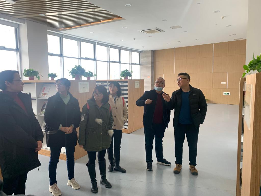 首先,罗主任及相关工作人员陪同王洪军馆长一行对期刊阅览区、书库借阅一体区、电子阅览区、研修室等区域进行实地考察,考察过程中罗主任详细介绍了新图书馆的设计理念、功能布局、设施设备等情况,双方还探讨了新图书馆建设的经验及不足。