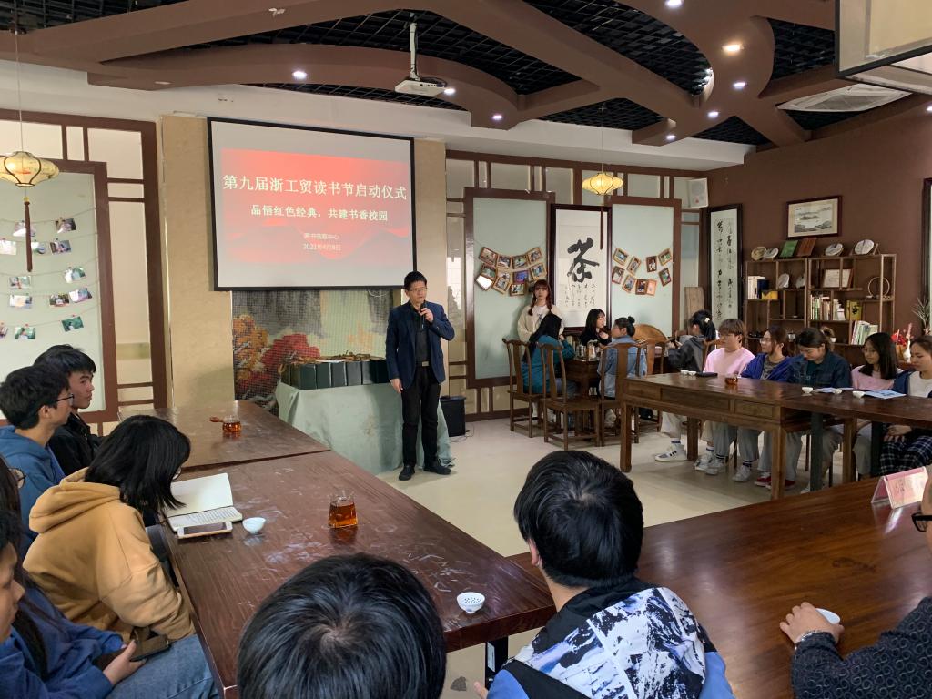 为迎接中国共产党百年华诞及第26个“世界读书日”的到来,图书馆特别举办了以“品悟红色经典,共建书香校园”为主题的第九届读书节系列活动。4月9日下午,读书节启动仪式在府东路校区大益茶室举行,图书馆部分馆员、获奖读者及班级代表30余人参加了此次活动。张俊平副院长也应邀出席启动仪式。