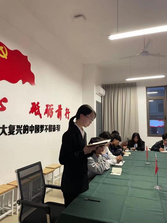 党史学习会的第二项议程是由几位预备党员发表各自观后感。首先发言的是刘倩红同学,她认为我们应该向在此次新冠肺炎疫情防控狙击战中冲锋在前的党员们学习,将他们作为自己的榜样争取做一个有责任、有担当的新时代共产党员并且要积极主动接种新冠疫苗做好榜样;其次发言的是李云月同学,他以《榜样5》专题节目中的先进基层党组织和优秀共产党员典型事迹为例指明了榜样是怎样炼成的;最后发言的是叶啸天同学,他指出我国在中国共产党的领导下坚持全国一盘棋,调动各方积极性,集中力量办大事。我国之所以能取得新冠肺炎疫情防控阻击战的胜利,一个重要原因就在于充分发挥这一显著优势。