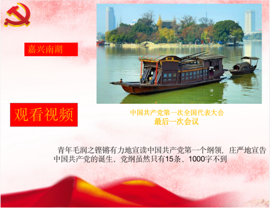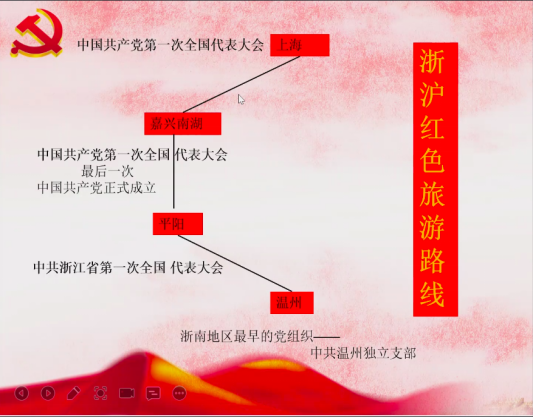 4月23日的世界读书日,分院学生党支部在钉钉上开展“一起聆听红色故事”的主题党日活动暨分院第二期红色故事汇活动。支部全体党员参与学习,会议由支部书记黄丹华老师主持。活动以世界读书日为切入点,全体党员讨论和分享各自印象中最深刻的书、对个人启发和影响最大的句子。同时,结合学校下发的四本党史类学习材料,讨论如何开展集体和个人的党史教育学习。此次以红色故事汇为主题的党日活动,深入学习浙沪红色旅游点:上海、嘉兴、平阳和温州。上海有中国共产党第一次全国代表大会会址,在这里,举行了中共一大的前五次会议。第六次会议因法租界巡查而被迫中断,并转移到嘉兴南湖。学习上,大家一起了解和学习会址选择南湖的原因、代表转至南湖游船的路线图以及第六次会议内容。为了更深入地了解红船会议,大家观看了由嘉兴学院学生排演的《初心·南湖会议》情景剧,更加直观地“走入”会议现场,知史学史。全体党员认真学习红船精神并讨论如何践行。