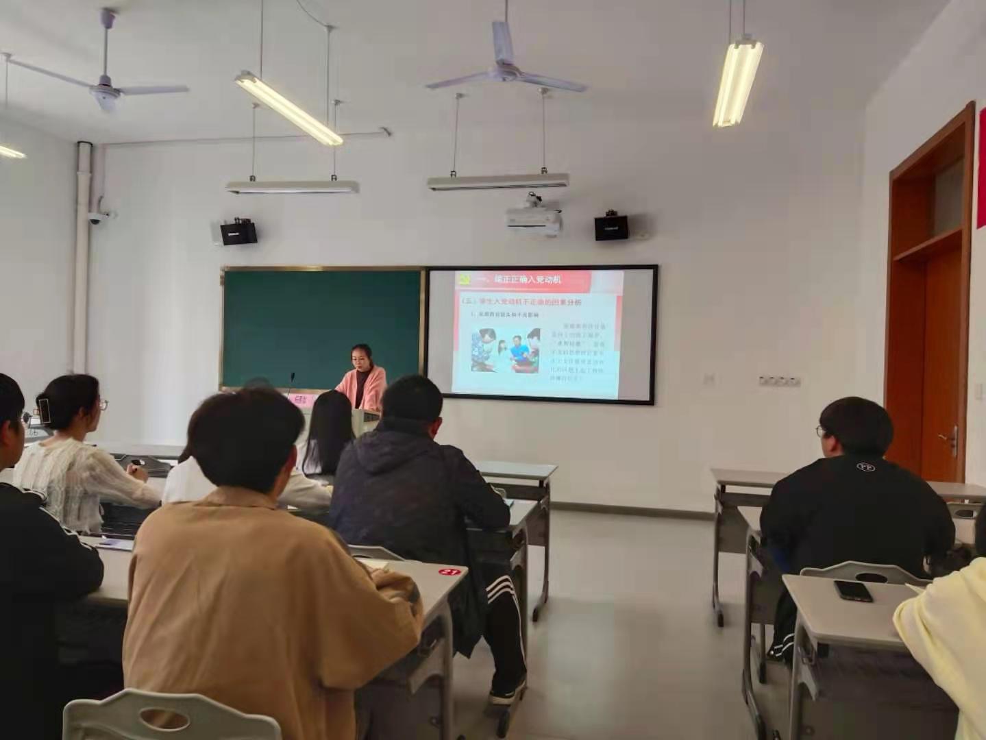 杨雁如老师为同学们带来“端正入党动机”的课程。杨老师指出正确的入党动机需要坚定的信念,需要全心全意为人民服务的思想,需要起到先锋模范作用。身为积极分子,应当主动接受组织的培养教育和考察,自觉加强党性修养和磨练。