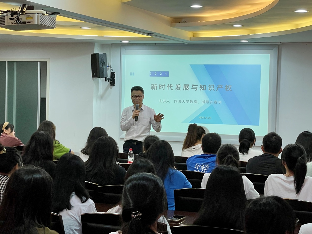 4月23日下午,同济大学上海国际知识产权学院博导,温州知识产权学院顾问许春明教授以“新时代发展与知识产权”为题,为在校生开展专题讲座。温州知识产权学院知识产权管理专业全体学生参加此次讲座。许春明教授的讲座精彩纷呈,引发了学生对于知识产权事业发展的思考。许春明教授耐心解答了大家的提问并对学生专业的职业规划进行指导,进一步激发了学生的学习热情。