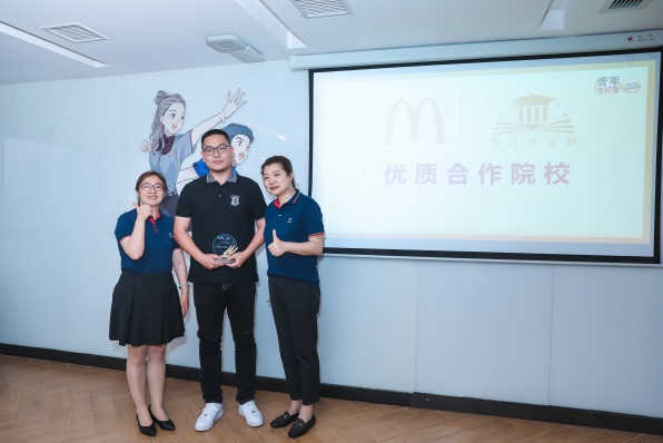 520企业开放日”活动是麦当劳中国一年一度的企业招聘周启动活动,旨在发布麦当劳在人才培养中的最新举措,本次活动主题是“现代学徒制人才培养计划”。我校与麦当劳于2020起合作开展现代学徒制人才培养,校企在两年的合作中取得了丰硕的成果,共选拔两期麦当劳学徒班,累计培养学生部门经理3名、人力资源经理1名,计时经理3名。同时我校也荣获麦当劳现代学徒制项目“优质合作院校奖”,成果得到了行业、企业、社会的高度认可。