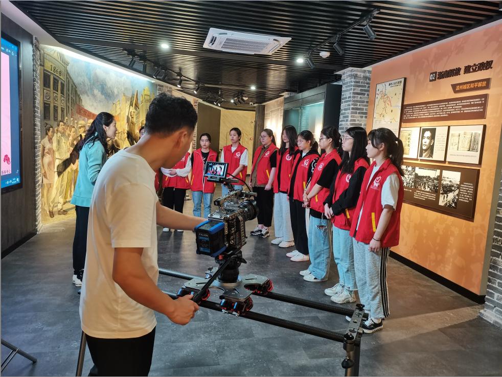 在党史教育学习中,入党积极分子们穿上伟德BETVlCTOR1946的志愿者服装,参与革命历史纪念馆的宣传片拍摄,以“体验式+互动式”的形式参与党史学习教育。入党积极分子们认真聆听讲解,积极配合拍摄要求,系统地学习温州城区的红色故事。此外,入党积极分子也体验讲解员角色,学习如何系统地讲解红色事迹,传播红色文化。