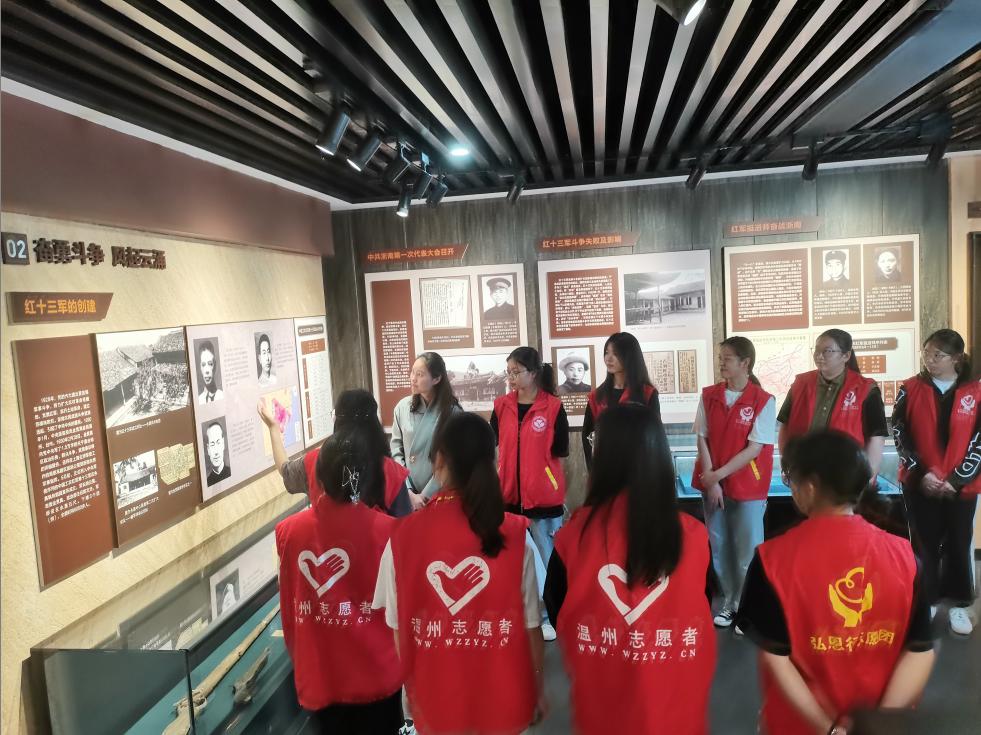 2021年5月18日,应温州市鹿城历史文化街区邀请,现代管理学院学生党支部组织入党积极分子来到温州市城区革命历史纪念馆,参与一场特殊的党史学习教育。在街区工作人员陈旖旎讲解下,入党积极分子们了解温州城区的分布概况、红色文化和革命事迹,认识九柏园头、县前头、康乐坊等红色据点,学习革命英雄和烈士的革命精神。