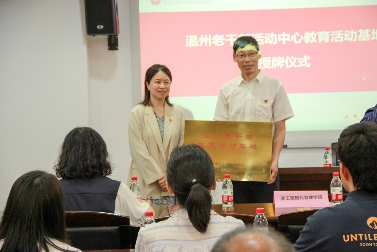 仪式后,举行温州老干部教育活动基地的授牌仪式,由温州老干部活动中心副主任谢弘女士进行了授牌。