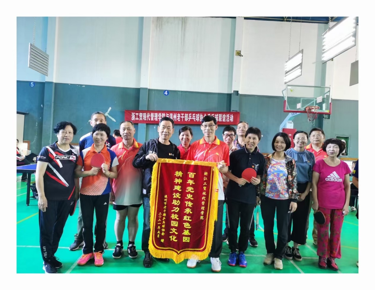 活动结束后,双方还进行了乒乓球联谊赛,温州市老干部乒乓球协会还给现代管理学院赠送了锦旗。