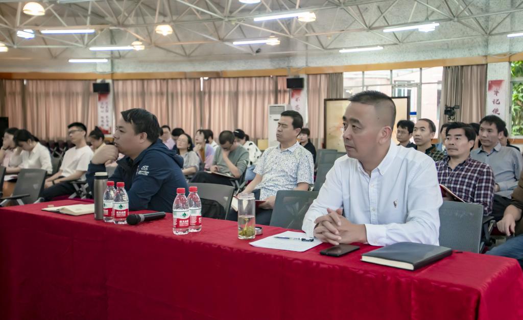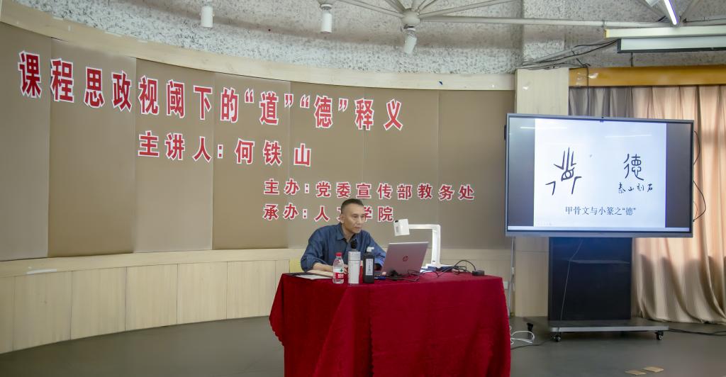 本次讲座邀请人文学院何铁山教授作《课程思政视阈下“道”“德”释义》主题讲座。何铁山教授致力于书法研究创作、先秦哲学研究数十载,深谙孔孟之道,研究成果颇丰。讲座中,何教授通过说文解字、古今对比道德的论述形式,深刻剖析了尊道而行、以“公正”为核心、经得起自身良心的拷问的道德内涵,并结合当前形势指出社会主义核心价值观就是一种德,是一种道,是实现中华民族伟大复兴中国梦的路径。何教授的讲座引发大家关于人生哲学、师德发展的思考与讨论。互动中,何教授以其深厚的国学、史学底蕴所给予的精彩绝伦的回答,让大家感受深刻,有受益匪浅、意犹未尽之感。