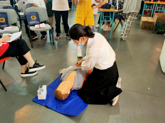 下午13:00,所有参训同学分成四组依次进行心肺复苏、包扎等实操练习。通过同学们的反复练习、总结,培训考试通过率达到98%。