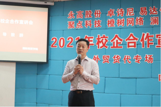 国际商贸学院领导成荣芬、王耀贵、陈碎雷、李侠先后出席五场宣讲会,代表学院向各位企业代表的到来表示欢迎和感谢,并嘱咐参会学生认真参与宣讲会,了解企业用人需求,在后续的面试环节中能应聘上自己心仪的企业。