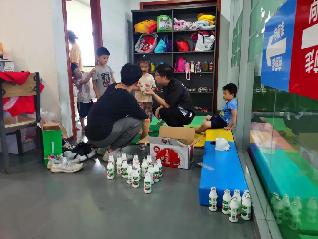 4.每天下午三点的点心时间内,为了防止幼儿班小朋友们不小心扎到自己或误吞包装袋,队员们会提前将吸管插进牛奶里、撕好点心包装纸再分发给他们。