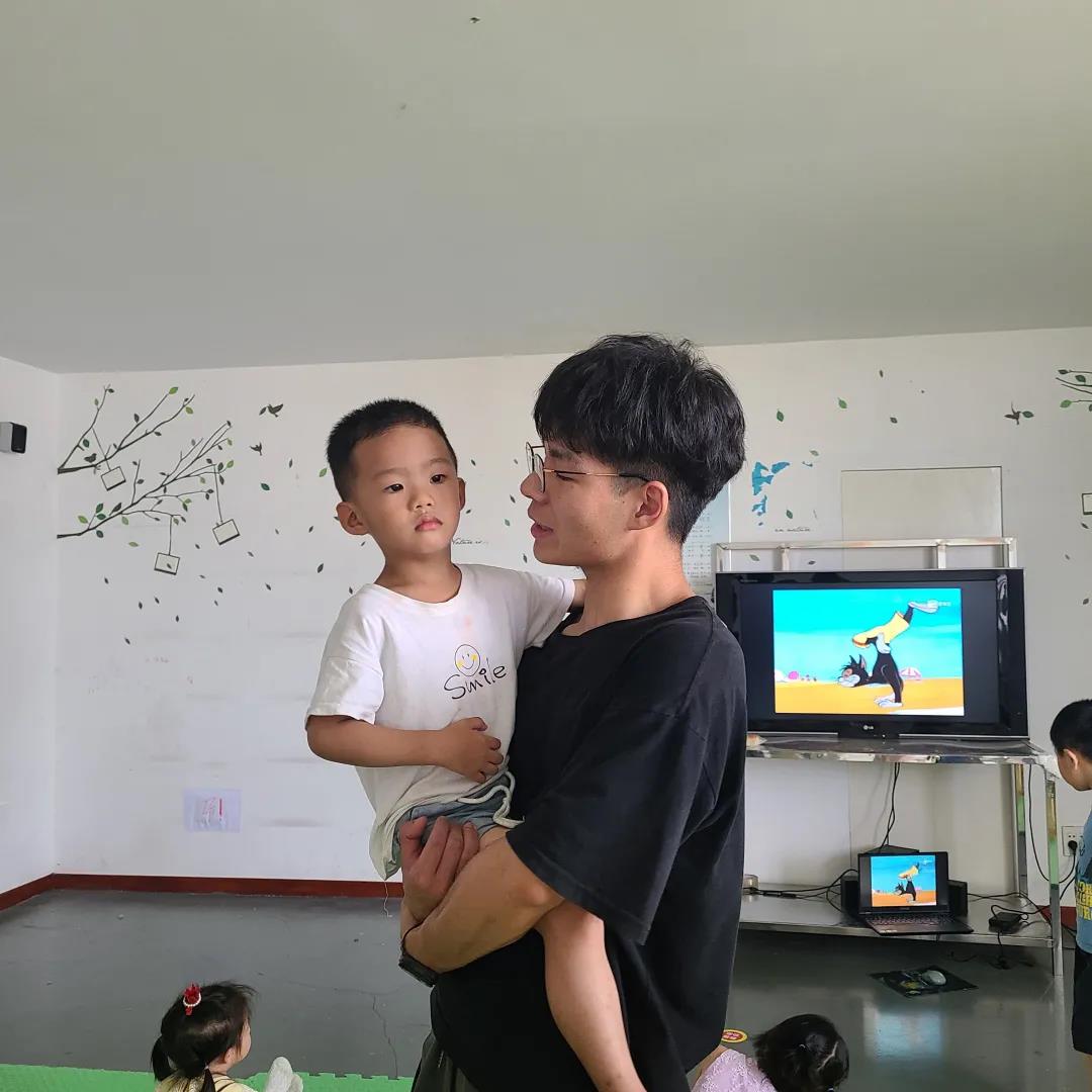 1.由于幼儿班都是低龄儿童,很多小朋友还是第一次离开家人,因此他们刚来上课时难免有哭闹的情况发生。爱心支教小队的队员们充分考虑到这一点,他们会在小朋友们情绪低落时第一时间出现,耐心地和他们讲道理,通过“抱抱举高高”“坐飞机”等方式哄他们开心,稳定好他们的情绪并帮助他们尽快度过适应期。