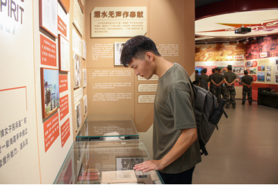 参军与退伍学子工作室成员在讲解员的引导下,和部分退役军人一起观看了“海霞”女民兵光辉岁月的相关视频。女子民兵连自组建以来,多次参与重大演训任务、军事科目汇报表演、重大军事科目比武考核,屡建奇功。一代代“海霞”女民兵团结一心、保卫海岛、无私奉献的海霞精神感染着参观的学生。