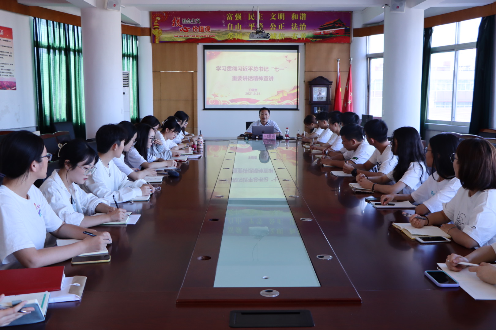 为深入学习贯彻习近平总书记“七一”重要讲话精神,9月24日下午,国际商贸学院党总支书记王耀贵在1号楼6楼会议室为分院全体学生党员宣讲习近平总书记“七一”重要讲话精神。