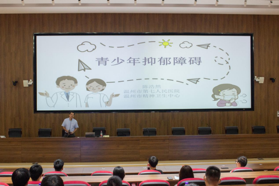 抑郁症是青少年伤亡的重要原因之一,加强对青少年抑郁的现状、病因、表现形式的科普,对青年抑郁症的预防和治疗尤为关键。陈医生介绍,创伤性的情境、虐待家庭、遗弃或替罪羊的受害者或者威胁生命的疾病等社会环境因素都是抑郁症形成的重要原因,遗传也是抑郁症病因中不可忽视的重要因素。陈医生呼吁有家庭遗传史或心理病史的同学主动告知老师,进行系统规范的治疗。结合自己的临床经验,陈医生分析了当今大学生心理压力的主要来源,包括人际关系、就业压力、学习等问题,他希望大家能加强沟通,放平心态,积极预防。最后,陈医生强调,抑郁症及其余心理疾病并不可怕,只要及时察觉,正视疾病,是可以痊愈的,可怕的是忽视、隐瞒它。希望同学们能树立正确的心理健康观,有效调整心理,养成积极、健康、向上的生活心态。