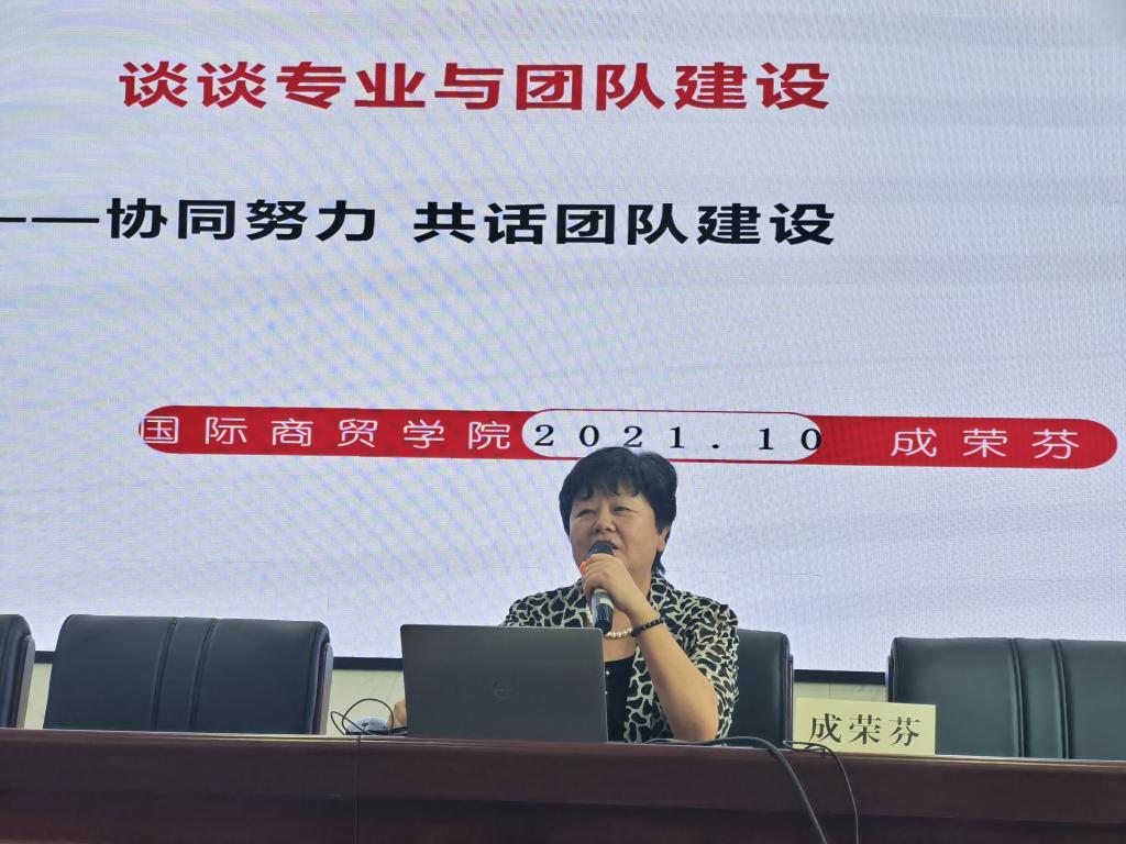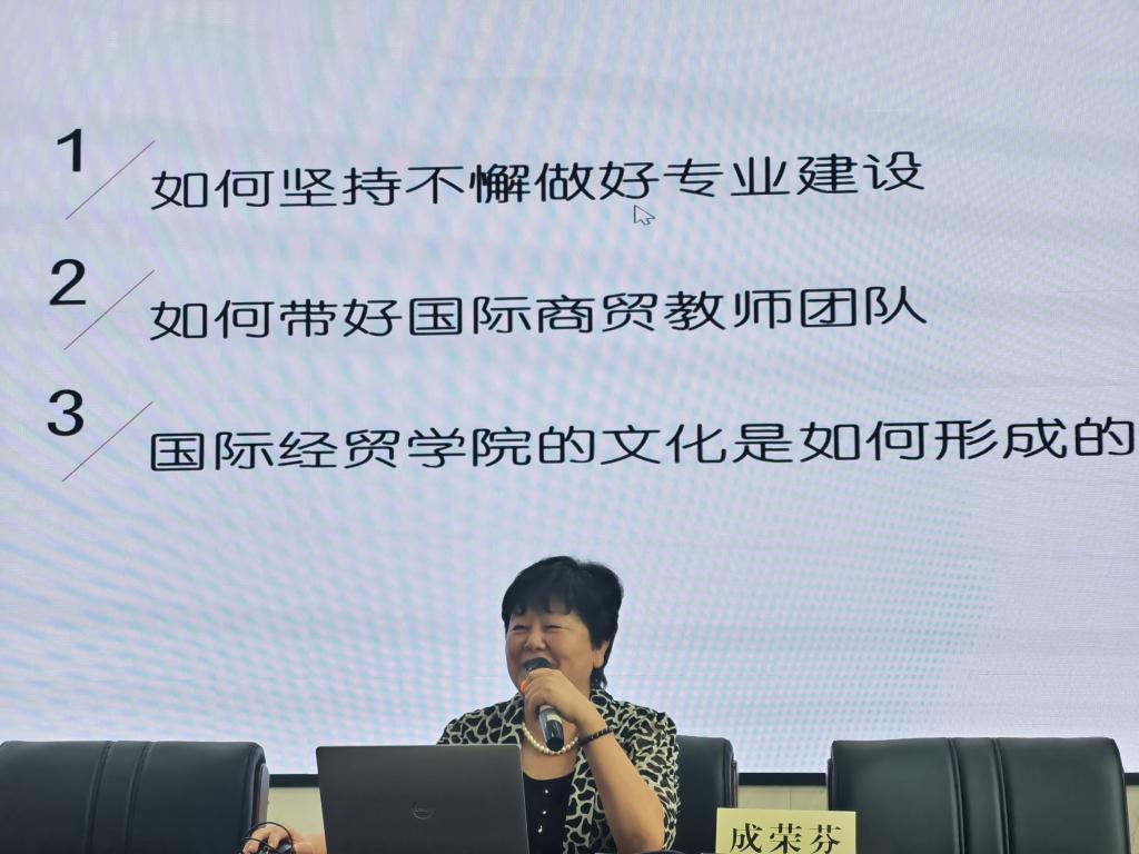 成荣芬院长以“协同努力打造优秀专业与创新团队”为主题,从如何坚持不懈做好专业建设、如何带好国际商贸教师团队和如何营造国际商贸学院和谐文化三个方面展开讲座。