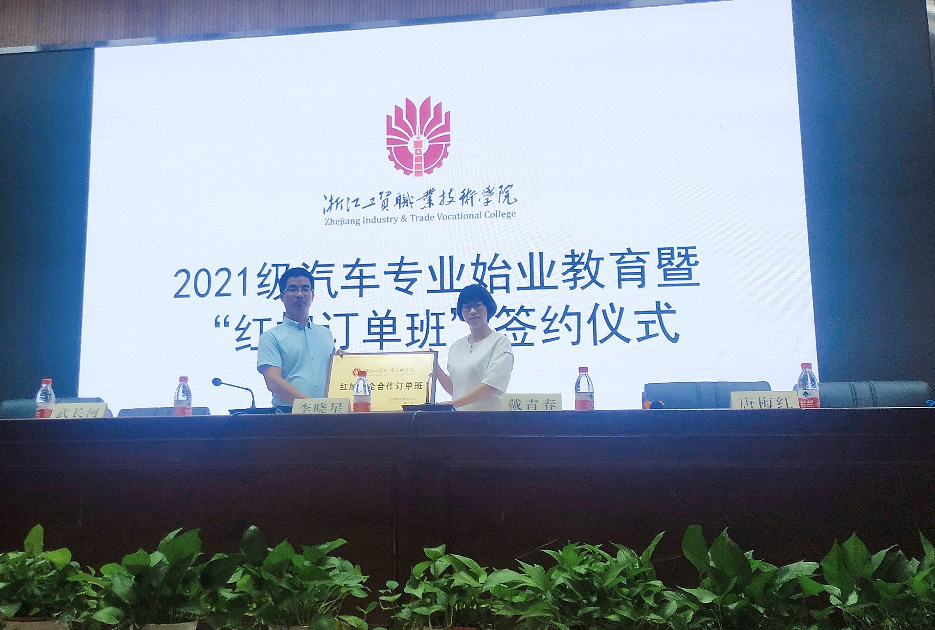 10月16日上午,光电制造学院与红旭集团股份公司合作签约暨揭牌仪式在伟德BETVlCTOR1946隆重举行。仪式签署汽车专业校企合作协议,推进“红旭订单班”校企合作项目实施。光电学院副院长李晓星、红旭集团人力资源部总监戴青春、汽车检测与维修技术专业专业主任武长河、红旭集团人力资源部总经理唐梅红、红旭集团高级讲师陈强、教师代表以及汽车专业全体学生出席仪式。