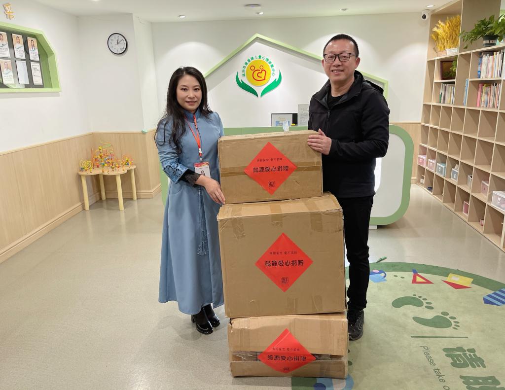 郑央凡老师代表懿鹿岗表示今后创岗团队将继续关注自闭症及特殊儿童群体的成长,并呼吁社会公众能够给予星宝们及其他特殊儿童更多的关爱和包容,此次捐赠的物品是懿鹿岗成员们为星宝们精心挑选的三箱益智类训练玩具,希望玩具能给星宝们带来欢乐,也希望传递给星宝的家人们懿鹿岗团队将尽自己所能参与服务星宝的志愿者活动和提供慈善公益艺术训练,默默支持和关注星宝们的成长。接过沉甸甸的三箱爱心捐赠品,胡温中老师代表中心向懿鹿岗表达了诚挚的谢意,感谢创岗团队对自闭症儿童的关心与爱护,感谢懿鹿岗在初冬时节给孩子们送来的暖心礼物,也代表机构的孩子们谢谢大家。